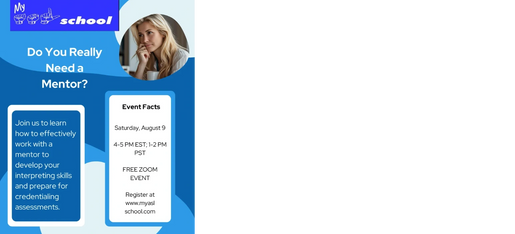 NEW DATE ADDED: Join this FREE event on Sept 13 4:00-5:000 EST/ 1:00-2:00 PST to find out more ab out how a mentor can help you achieve your professional goals! Register in the store.